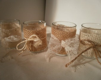 Stenciled And Burlaped Candle Holders
